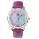 This pretty purple African American ballerina watch features a pink background with the dancer in a graceful pose. Makes a great gift for a little girl. Place your order today!