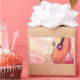 Pretty Anime girl at sunset listening to music in soft tones of Pink and Orange peach original artwork and character By Diasuu (me)