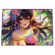 Anime girl with long brown hair, flowers in her hair, a pink and chocolate cupcake birthday to and from gift bag.