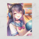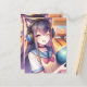 Pretty Anime Girl in Bowling Birthday Party Postcard