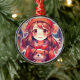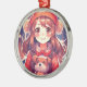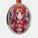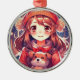 Cute Christmas ornament with a pretty anime girl with ear muffs at Christmas time holding a puppy dog.