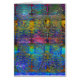 A gorgeous abstract piece reminiscent of stained glass done in vibrant iridescent colours (blue, green, violet, gold and pink) coated with a rich textured look.