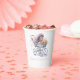 Cute baby shower paper party cups, with graphics of a pretty baby buggy with flowers and bows. Personalise the pink custom text to suit your needs.