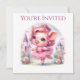 A pretty ballerina pig is dancing in front of a fairytale castle. Perfect for a girl's birthday party or baby shower. Add your own customised text.
