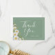 Pretty floral Spring / Summer themed wedding thank you card design features watercolor white daisies corner on trendy 2022 basil green background with white customisable text blocks in modern fonts