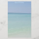 This beautiful ocean photograph features pretty clear blue water rolling up onto the shore of the beach. The pretty light blue of the sky and sea along with the light sand of the beach make the perfect background to compose your letters on while on summer vacation. Classy lined stationary for a beach house to leave for their guests to leave reviews on their vacation home.