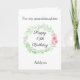 A pretty, personalised granddaughter birthday card, which you can essily personalise with her age and name. The inside birthday message can also be personalised. The back also features the same pretty green leaves laurel on front with pink flowers. You'll be able to personalise with the year.