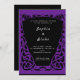 The invitation features a classic black background that beautifully contrasts with the elegant white text, making your wedding details stand out. But what truly sets this invitation apart is the striking and elaborate art deco border that runs along the edge of the card in a deep shade of purple.