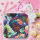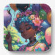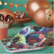 Cute anime girl of colour with flowers in her hair and birthday balloons birthday party paper plates.