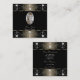 Make a lasting impression with this luxurious and elegant business card design featuring fine filigree ornate ornaments with diamonds and sparkling stars. The borders are shimmery grey - beige with gold decor on a black background.