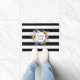 Pretty Black & White Stripes Floral Wreath Text Doormat