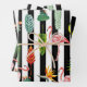 Pretty Black White Stripes with Flamingo Cactus Wrapping Paper Sheet