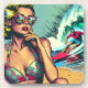 Pretty Blonde Retro Woman and Surfer Guy Coaster
