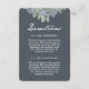 Lovely direction insert card in soft colour scheme of vintage shades of blue-grey, olive green and dusty purples on a pretty background in a deep grey blue hue. Original illustration of floral blooms adorn the top front and back of the card with subtle stripe pattern on the back as well. Elegant handwritten look for the main text element adds style and grace. Perfect for a spring, summer or garden wedding.