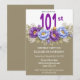 Celebrate an extraordinary milestone with this elegant 101st birthday invitation featuring a stunning arrangement of soft blue and rich purple peonies accented with delicate greenery. The sophisticated floral design paired with bold, modern typography creates a timeless and graceful look perfect for honoring a remarkable life.