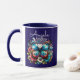 Pretty blue and pink butterfly and flowers personalised coffee cup.