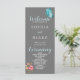 With the majority of the program printed in a simple white font, the words "Welcome," "Ceremony," "Bridal Party," and the word "and" between the couples names are printed in a beautiful decorative blue script font that perfectly complements the colours of the butterfly.