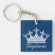 Pretty key chain done in a federal blue background. Graphics of a pretty light blue and white crown decorates the middle, with white script text, on the bottom. Personalise the text for yourself or as a great little gift idea.