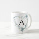 A pretty feminine decorative personalised mug, featuring blue watercolour floral bouquets and a funny quote about the youngest child,© Julie McIver