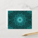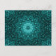 A pretty kaleidoscope flower mandala in blue on a post card.
