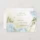 Gorgeous customisable botanical rsvp card with featuring pretty blue flowers with beautiful green leaves and some gold glitter.