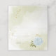 Romantic botanical place card featuring pretty blue flowers with some beautiful green leaves.