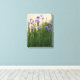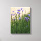 Decorate a wall space with this wrapped canvas print that features a photographic image of pretty, blue Irises and their lush, green foliage growing against a light coloured stucco wall behind them. A lovely, floral image! Customise your canvas size as desired along with frame options.