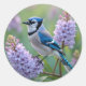 Pretty Blue Jay Standing on Lilac Branches Classic Round Sticker