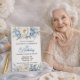 Pretty Blue Magnolia and Peony 101st Birthday Invitation