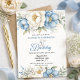Pretty Blue Magnolia and Peony 50th Birthday Invitation