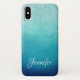 Personalised phone case with a pretty blue half mandala pattern with a background gradient colour of light sea blue transitioning into a dark navy blue.
