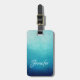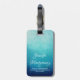 Luggage tag with a pretty blue half mandala pattern with a background gradient colour of light sea blue transitioning into a dark navy blue.