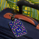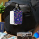 Pretty feminine floral pattern with blue background on personalized luggage tag.