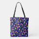 Pretty personalized tote bag with a feminine floral pattern on a dark blue background.