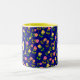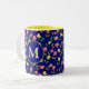 Pretty personalized mug with feminine floral pattern on a dark blue background.