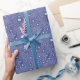 This wrapping paper for your gift giving is a pretty deep blue and white with an abstract pattern of splatters of water droplets.