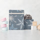 This pretty Christmas wrapping paper is sure to please your friends and family this holiday season when they see their lovely gifts wrapped up. A textured background in dark blue complements a pattern with blue and white snowflakes in several variations. Perfect holiday gift wrap for kids or a new baby.