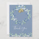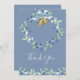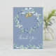 Pretty Blue Wreath Floral Elegant Script Wedding Thank You Card
