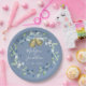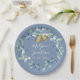 Pretty Blue Wreath Script Elegant Custom Wedding Paper Plate