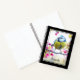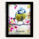 Spiral notebook with an amazing photograph of the cutest little bird perched on a branch covered in pink blossoms and green leaves. The bird has a blue head and yellow body with a very sweet face. Adorable.