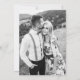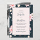 Pretty and chic blue and blush pink retro floral pattern wedding invitation with classic calligraphy script and one full photo.