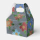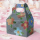 Favour box blooming with colourful floral art pattern. The grey background can be changed to any colour to match your special celebration event or wedding colours. The thank-you text can be personalised or the text is removable.