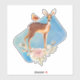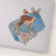 A decal with a beautiful brown doe with white spots on her fur. A cute bird sitting on the deer's back. An elegant flower arrangement composed of watercolor roses and light green leaves beneath her feet. Darling and adorable design.