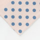A personalised blanket with a beautiful brown doe with white spots on her fur. A cute bird sitting on the deer's back. An elegant flower arrangement composed of watercolor roses and light green leaves beneath her feet.  A blue polka dot border with a peach coloured background. Darling and adorable design.