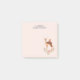 Sticky notes with a beautiful brown doe with white spots on her fur. A cute bird sitting on the deer's back. An elegant flower arrangement composed of watercolor roses and light green leaves beneath her feet. Darling and adorable design. Personalise with a name. Peach coloured background.