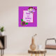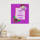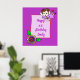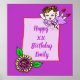 Personalise this poster by adding the birthday girl's name to it in the customise area. Cute brown haired Fairy Girl Happy Birthday with bright purple , lime green, yellow. Whimsical Folk Art style poster.