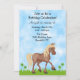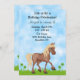 ~Pretty brown horse with flaxen mane and tail birthday party invitation for girls. It's perfect for any horse or pony themed party. Personalise with the birthday girl's name and all your party details. Some graphics by artwork©delightful-doodles.com