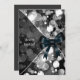Cheerful black and white bubbles background with black sheer bow trim overlay party and event invitation template. This template design works well as an invitation to a birthday party, cocktail party, holiday party, retirement party, New Year's Eve party, wedding and engagement party, and any other special occasion. Customise the front and back with your choice of font style and colour, and background colour.