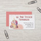 Pretty bakery business card done in white, with colourful sweet graphics of a birthday cake and faux peach coloured glitter. Text is fully customisable to suit your business needs. Great for at home bakers too.