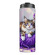 Pretty Cat with Purple Flowers and Yarn Thermal Tumbler